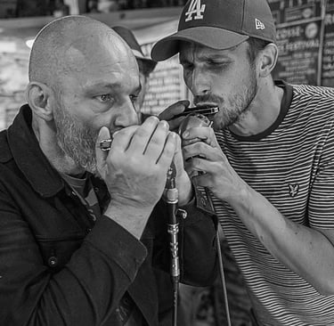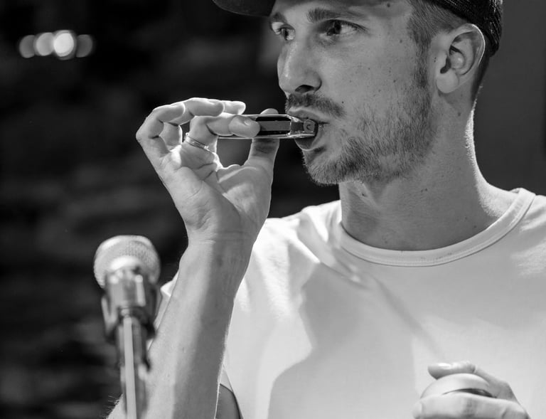 Aujourd’hui, je mets cet amour au service des mariages. À l’église, mon harmonica suspend le temps et caresse l’instant solennel. À la réception, il bondit, pulse, entraîne les corps et les cœurs dans une danse vivante, joyeuse et sincère. Et derrière le souffle et les notes, je reste photographe : attentif, présent, à capturer la vérité des regards, des gestes et des instants, avec cette petite touche musicale qui rend chaque mariage unique.