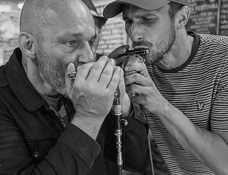 J'ai été formé au blues et à l'instrument par Nico Wayne Toussaint, un harmoniciste qui a partagé la scène avec les plus grands noms du blues aux USA, par exemple James Cotton.
